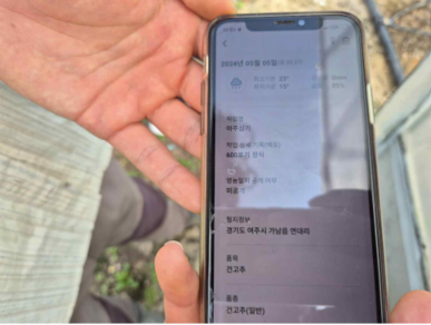 - 품목 : 들깨(참여인증 2단계) - 독립된 필지로 위험요소는 없으며, 고랑 사이를 넓게 두어 바람길이 확보되어 작물 생육에 유리하다. 양파 수확 후 들깨를 후작할 예정이며, 영농일지는 세부적으로 기록해줄 것을 요청함.