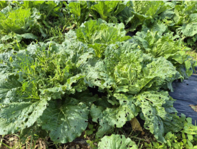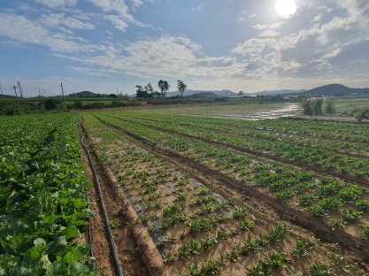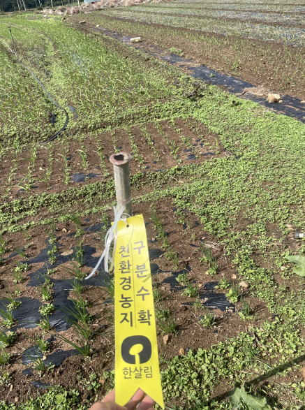 - 5,000평 규모의 독립단지로 위험 요소는 없으며 지하수를 사용한다. 8월 교육을 이수한 신규 생산자로, 알배추를 늦게 파종해 해충 피해가 적었다. 충박멸 등 공시 자재와 해초 액비(해조류·당밀·미생물 혼합, 6개월 발효)를 사용하며, 5개 동 1,500평의 시설과 3,500평의 노지를 운영 중이다. 적갓 600평은 5,000봉, 알배추·쌈배추 1,200평은 3,500개 이상 약정되어 있으며, 습해로 인해 정식을 추가 진행했다. 쪽파에서 나방 애벌레가 발생했으며 인력 수급은 양호하다.