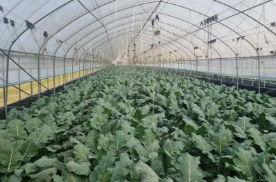 하우스는 이중 구조이며, 작년에는 토마토를 재배했으나 올해는 브로콜리로 작목을 전환함. 브로콜리는 꽃을 식용하는 작물로, 꽃이 노랗게 변하기 전인 11월 말~12월 초 수확을 목표로 하고 있음.