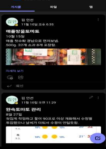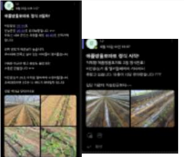 가을 작기는 올해 처음 시도하는 것으로, 기존 봄 작기보다 비품 비율이 낮은 편이며, 봄철 수확 시에는 약 20% 정도가 비품으로 발생함. 생산자는 공동체 공유 플랫폼을 통해 영농일지를 작성하고 있으며, 사진자료와 영농 외 활동까지 상세히 기록하고 있어 관리가 체계적으로 이루어지고 있음.
